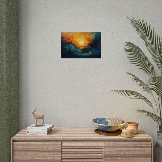Sun Pierces The Waves Abstract Art - Premium Art Print