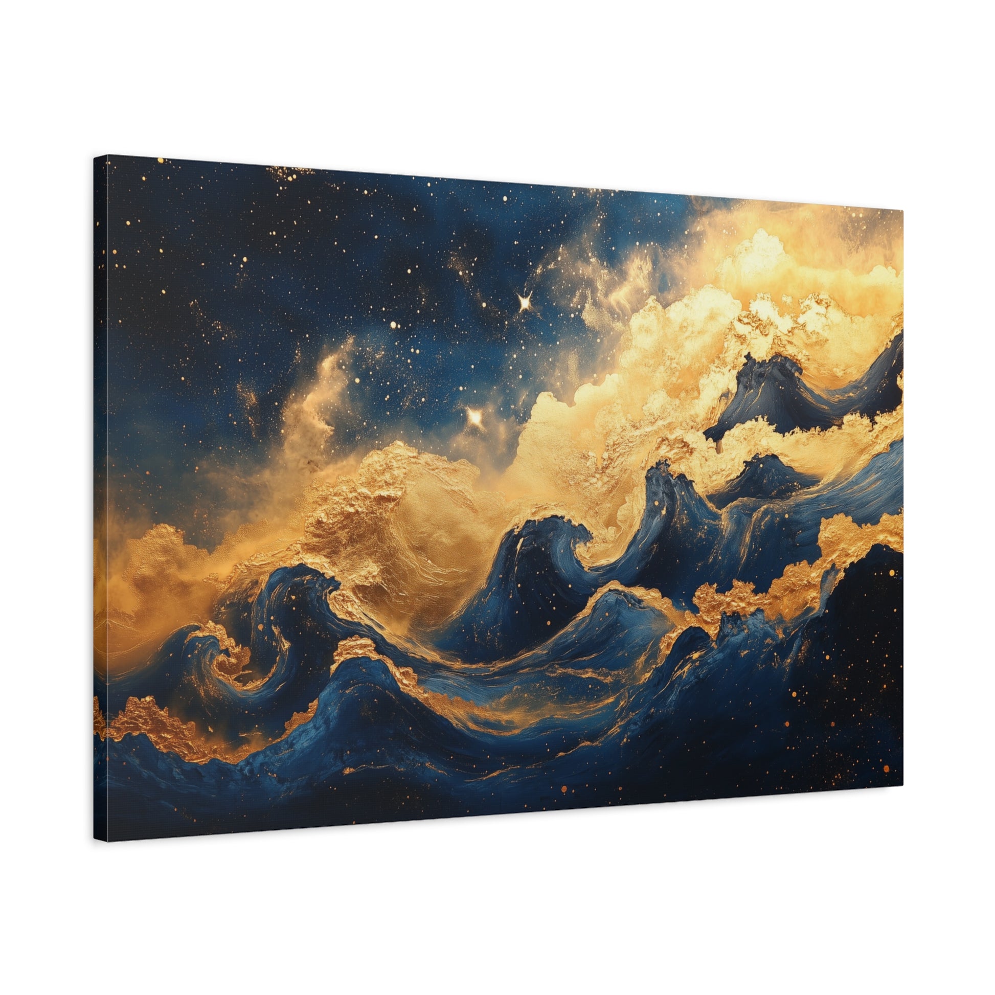 Transform your space with our stunning Gold Leaf Star Nursery Canvas art, a perfect blend of art and sustainability. Ideal for those who appreciate nature's beauty and enjoy creating a serene atmosphere in their homes or offices. Perfect for art lovers, space enthusiasts, or anyone looking to add a touch of elegance to their decor. It makes an excellent gift for housewarming parties, weddings, or just to celebrate a special occasion. Bring a piece of the ocean into your life and enjoy its beauty every day! Product features - 2 rubber dots for stability when hung - Produced using unique, high-quality coating with Greenguard Gold inks - Stretched on sustainable pine wood from renewable forests - Printed using non-toxic, latex inks Care instructions - If the canvas does gather any dust, you may wipe it off gently with a clean, damp cloth.